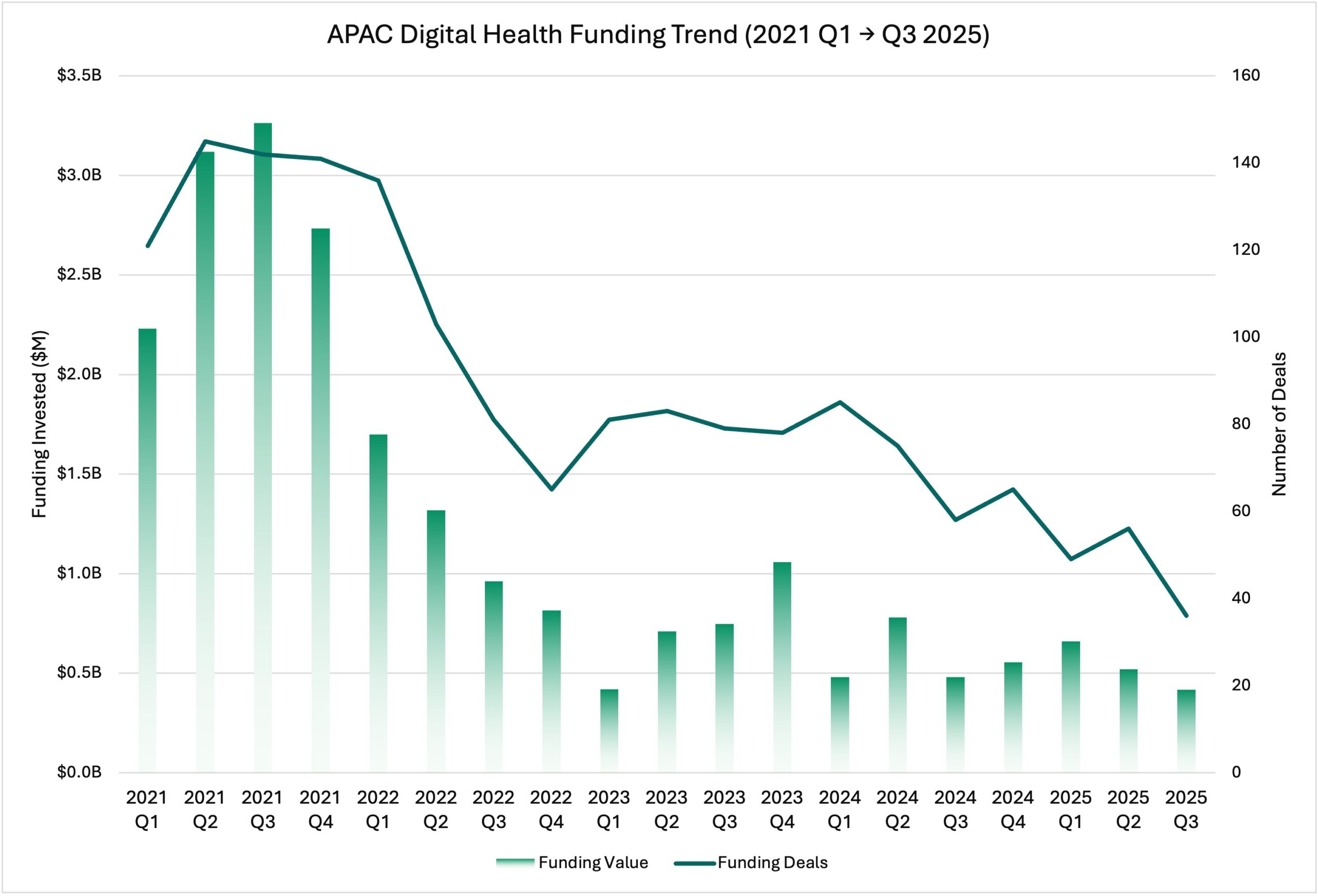 Collectively, these clusters accounted for nearly 70% of all APAC Q3 funding, underscoring a shift from wellness apps to regulated, clinical-grade innovation.