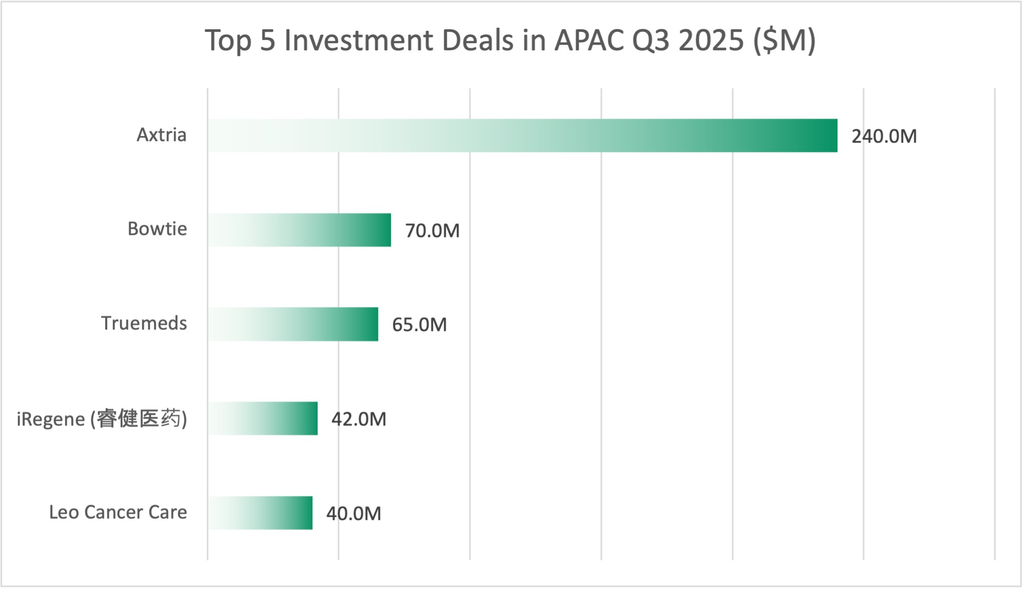 Q3 2025 saw several high-impact investments reflecting APAC’s continued strength in regulated and evidence-based innovation.