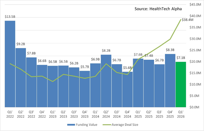 Q1 2026 presents two distinct but complementary stories about the state of global digital health — and understanding the difference between them is essential to reading the market accurately.