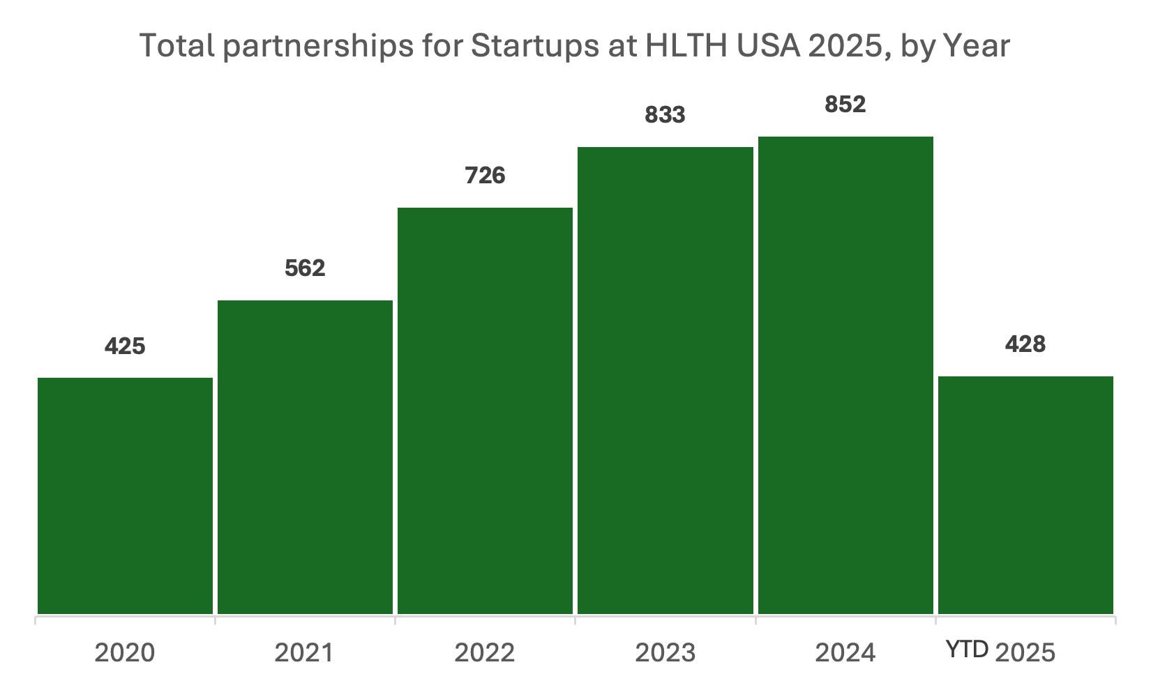 - For startups at HLTH USA 2025, Health Systems (Healthcare Providers) have become the most active partners, accounting for 30% of all partnerships, surpassing Tech and Insurance (each 12%).