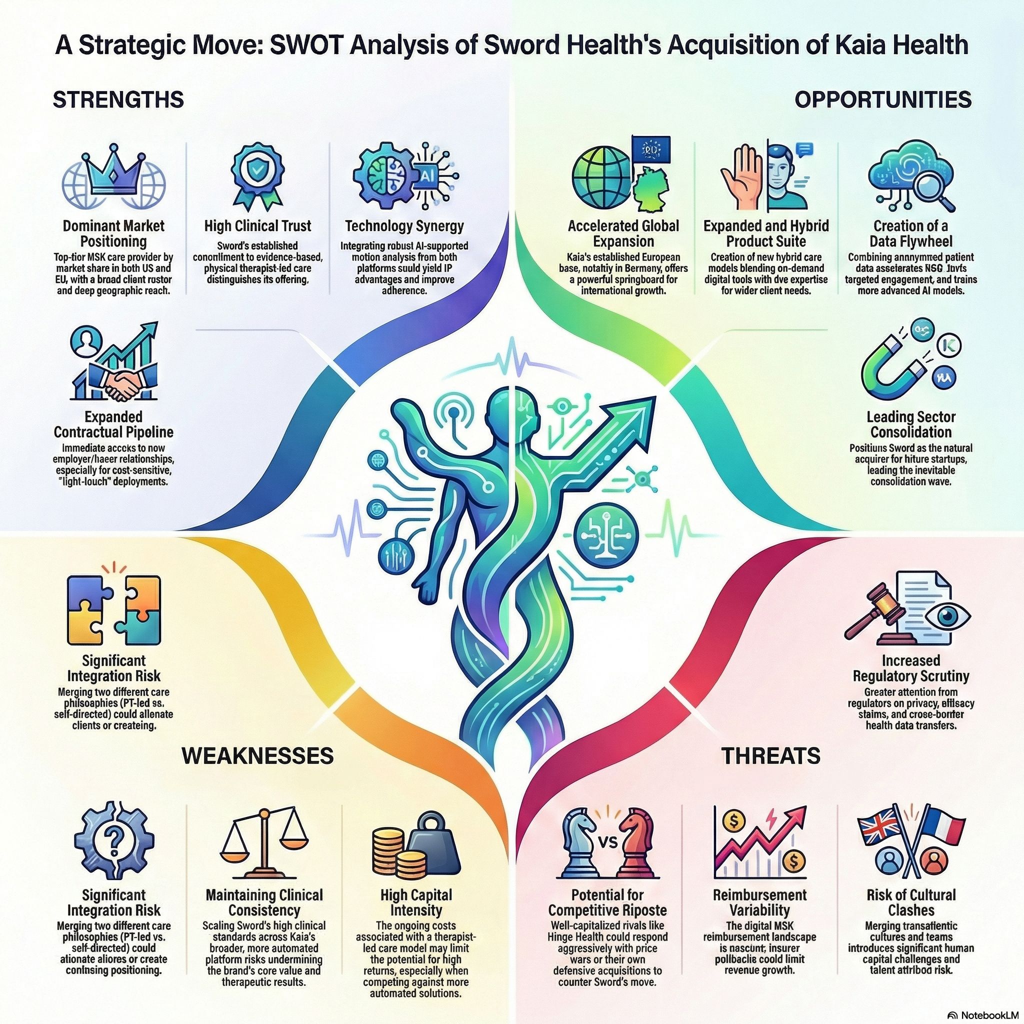 - Strategically, the acquisition secures Sword an immediate regulatory and reimbursement moat in Germany via Kaia’s DiGA approvals, while strengthening its competitive position against U.S. heavyweight Hinge Health.