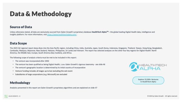 Galen Growth’s proprietary platform, HealthTech Alpha, provides the data source for this report. Corporate Business Development, Business Intelligence, and Digital Health Partnership teams worldwide prefer HealthTech Alpha, the world’s most-trusted Digital Health data, intel, and insights platform. Visit https://www.healthtechalpha.com to learn more about our data or https://www.galengrowth.com research for our reports.