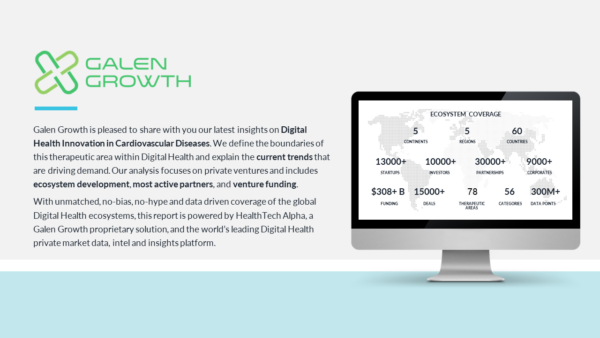 Galen Growth is pleased to share with you this in-depth report on Digital Health Innovation in Cardiovascular Diseases. We define the boundaries of this therapeutic area within Digital Health and explain the current trends that are driving demand. Our analysis focuses on private ventures and includes ecosystem development, most active partners, and venture funding.