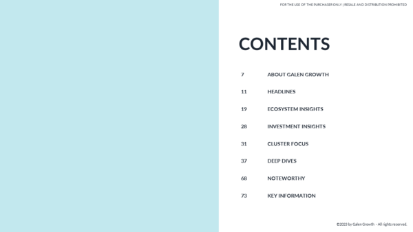 Galen Growth’s proprietary platform, HealthTech Alpha, provides the data source for this report. Corporate Business Development, Business Intelligence, and Digital Health Partnership teams worldwide prefer HealthTech Alpha, the world’s most-trusted Digital Health data, intel, and insights platform. Visit https://www.healthtechalpha.com to learn more about our data or https://www.galengrowth.com research for our reports.